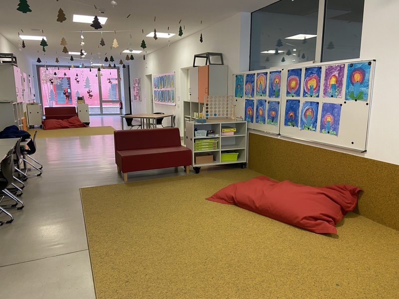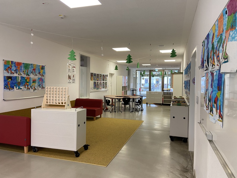 Dieses befindet sich gleich neben der Schule und beherbergt Krippen- und Kindergartengruppen, sowie Hortgruppen.