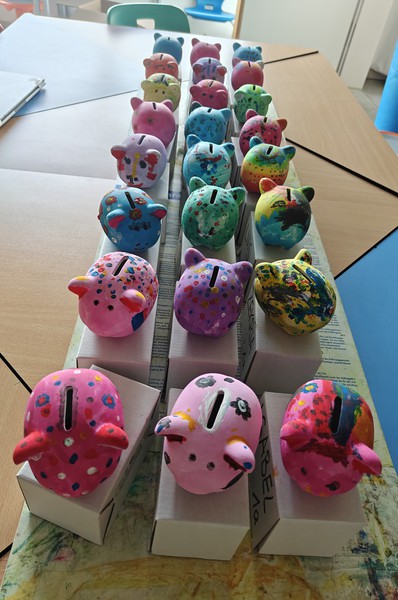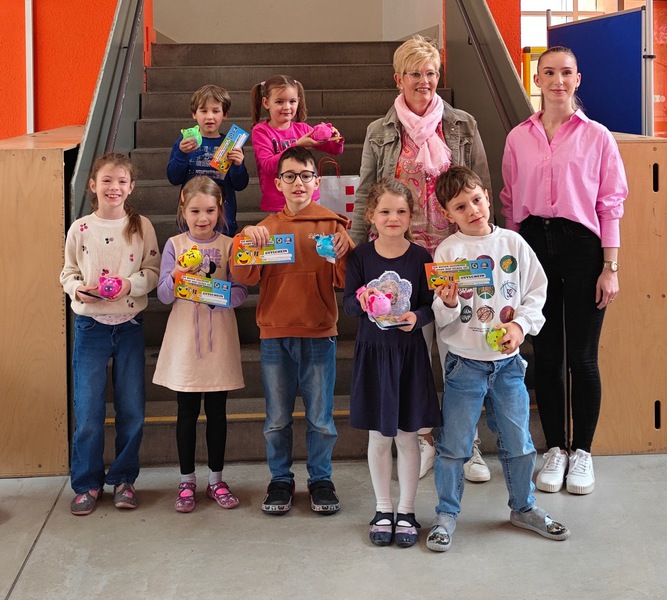 Wie jedes Jahr durften auch heuer unsere Schulanfänger im Herbst einen Sparschweinrohling kreativ gestalten. Die bunten Schweinchen wurden anschließend in der Sparkasse ausgestellt und bewundert. Im Rahmen einer feierlichen Siegerehrung erhielten nun drei Kinder jeder Klasse für ihre besonders gelungenen Spardosen einen großen Applaus und einen Gutschein für den Spielwarenladen. Aber auch die anderen jungen Künstler bekamen Trostpreise und natürlich ihr ganz individuelles Kunstwerk zur Erinnerung und als Sparanreiz mit nach Hause.